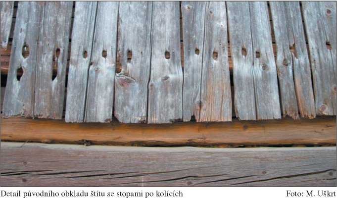Detail původního obkladu štítu se stopami po kolících